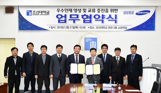 삼성증권은 지난 21일 조선대학교와 '금융전문인력 양성' 지원을 위한 업무 협약(MOU)을 체결했다고 22일 밝혔다.