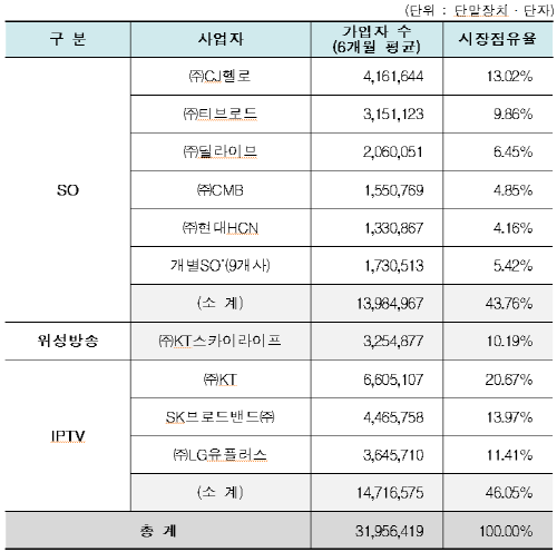 유료방송 시장에 대한 권역별 규제는 전국 점유율을 기준으로 한 합산규제로 전환됐고 이마저도 지난해 6월 일몰됐다.