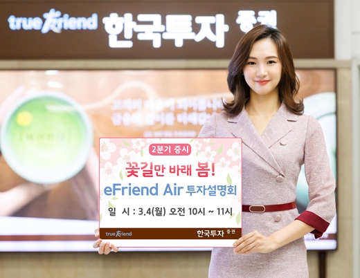 한국금융지주 자회사 한국투자증권(사장 정일문)은 온라인 증권방송 이프렌드에어(eFriend Air)를 통해 오는 3월 4일 오전 10시부터 '2분기 증시 전망 온라인 투자설명회'를 진행한다고 28일 밝혔다.