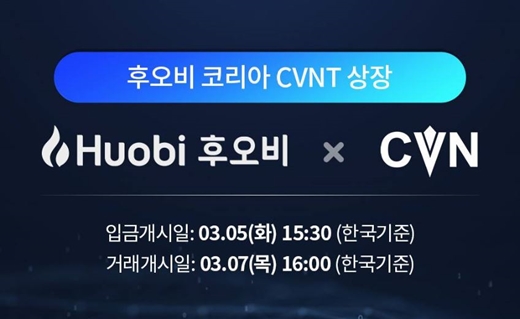 글로벌 디지털 자산 거래소 후오비 코리아(Huobi Korea)는 암호화폐 '콘텐트 밸류 네트워크(Content Value Network, CVNT)'를 상장하고 에어드롭 이벤트를 진행한다고 6일 밝혔다.