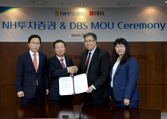 NH투자증권이 싱가폴 DBS Bank와 7일 여의도 NH투자증권본사에서 리서치 및 해외영업 부문 협력을 위한 업무협약(MOU)을 체결했다고 밝혔다.