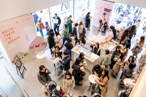 팝업스토어 오픈 첫날인 지난 9일에는 어피치의 관광 홍보대사 임명식과 도쿄점 완판 아이템으로 유명한 어피치 도넛&밀크티 무료 배포 이벤트가 진행됐다. 다음 날인 10일 오후에는 켈리그라피 작가 '켈리박'의 일본 이름 한국어로 적어주기 행사가 열렸다.