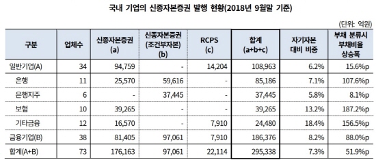문제는 자본확충을 목적으로 국내 시중은행들이 해당 증권을 잇달아 발행하고 있어 부채로 전환될 경우 부채비율이 대폭 늘어날 것으로 예상되고 있다는 점이다.