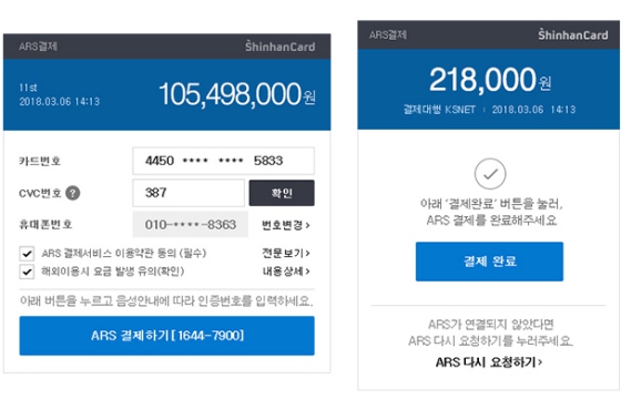 이는 온라인 결제 시 화면 결제창에 카드번호와 CVC(카드 뒷면 서명란에 있는 3자리 숫자 코드)를 입력하면 등록된 고객 휴대폰 번호로 ARS 전화가 걸려와, 카드 비밀번호를 누르면 결제가 완료되는 서비스다.