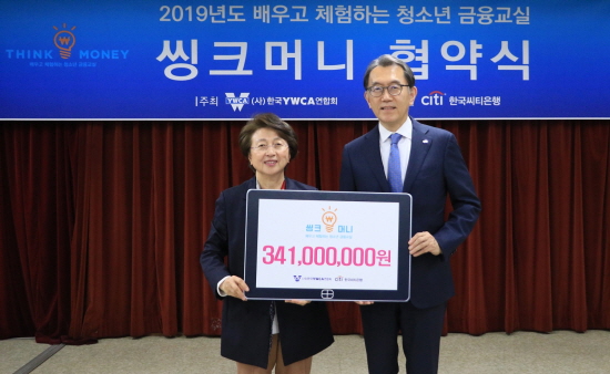 한국씨티은행은 한국YWCA연합회 와 3월15일 오전 서울시 중구 명동 한국YWCA연합회에서 '배우고 체험하는 씽크머니 금융교실'의 협약식을 개최하고, 씨티재단 후원금 약 3억4000여만원(미화 31만 달러)을 전달했다.