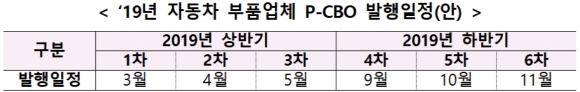 이번 프로그램은 중소·중견 자동차부품업체가 발행한 회사채를 50% 이내로 편입한 유동화증권을 발행하는 것으로 지원한도는 중소 부품업체가 150억원, 중견 부품업체는 250억원이다.