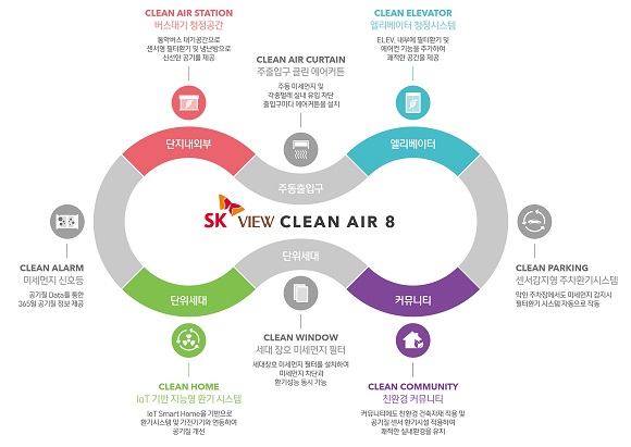 SK건설은 25일 아파트 공기질 개선 토탈 패키지인 'SK뷰 클린에어 8(SK VIEW Clean Air 8)’을 개발, SK뷰 단지에 단계적으로 적용할 방침이라고 밝혔다.