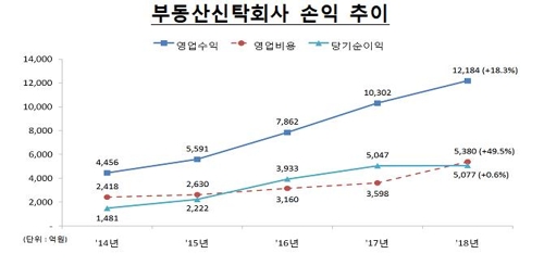 지난해 부동산신탁회사의 순이익이 사상 최대를 경신했다. 지난 2015년 이후 4년 연속이다.