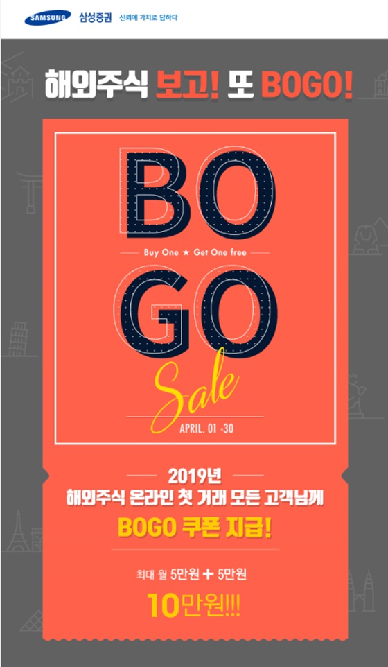 삼성증권은 온라인을 통해 해외주식을 1000만원 이상 거래하는 고객들에게 2만원 상당의 보너스 쿠폰을 증정하는 '해외주식 보고 또 보고' 이벤트를 진행한다고 5일 밝혔다.