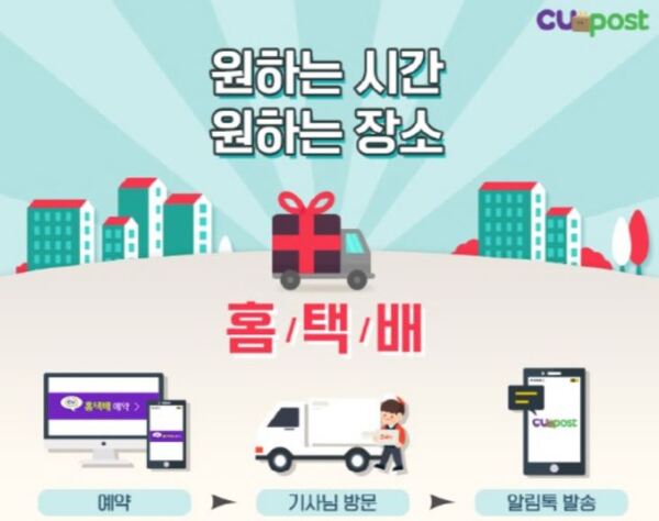 홈 택배는 고객이 편의점을 찾아가 택배 물건을 부치는 기존과는 고객이 지정한 시간과 장소에 배송기사가 찾아와 택배 신청을 대행해주는 서비스이다.