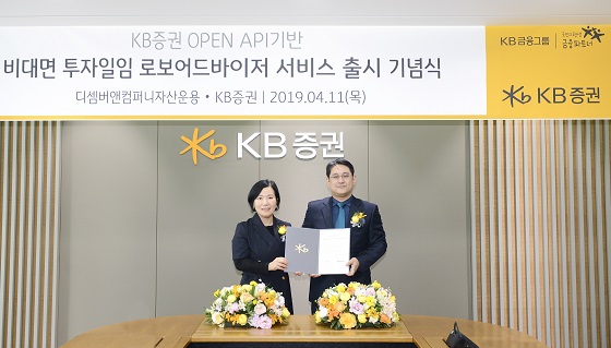 KB증권은 오는 17일 디셈버앤컴퍼니자산운용·쿼터백자산운용과 함께 KB증권 Open-API 기반 비대면 투자일임 로보어드바이저 서비스를 출시한다. 지난 11일에는 제휴계약 체결 및 관련 앱 출시를 기념하는 행사를 가졌다.