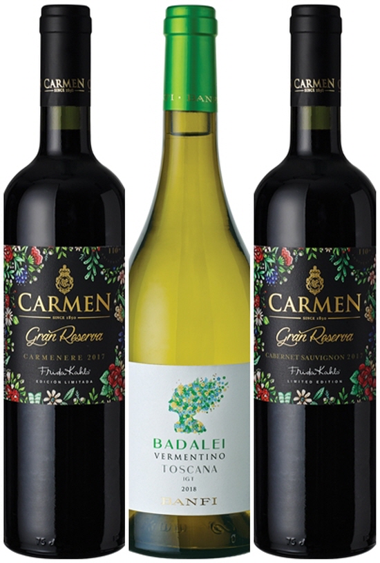 이번에 출시하는 와인은 이탈리아 '반피 바다레이 베르멘티노' 1종, 칠레 '카르멘 그란 리제르바 프리다칼로 에디션 (까베네쇼비뇽/까르미네르)' 2종이다.