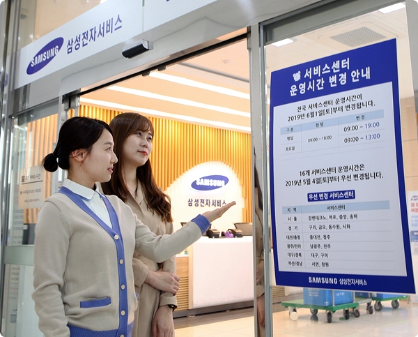 먼저 고객이 휴대폰, 노트북 등의 제품을 점검 받기 위해 방문하는 서비스센터는 토요일 9시부터 13시까지 4시간 운영된다. 평일에는 9시부터 19시까지로 기존보다 1시간 연장 운영한다.