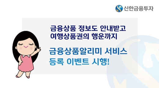 신한금융투자(대표이사 김병철)는 신규로 '금융상품알리미 서비스'를 등록한 고객에게 추첨을 통해 다양한 선물을 증정하는 이벤트를 5월 17일까지 시행한다고 29일 밝혔다.