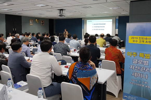 우리은행은 지난 2일 인도네시아 우리소다라은행 본점에서 현지 우수고객을 초청해 '글로벌 자산관리 세미나'를 실시했다고 3일 밝혔다.