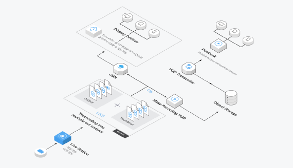 다량의 콘텐츠를 많은 사용자에게 버퍼링 없이 빠르게 전달하는 CDN(Content Delivery Network)과 녹화된 영상을 저장하는 'Object Storage' 및 비디오 파일을 변환하는 'VOD Transcoder' 서비스를 지원한다.