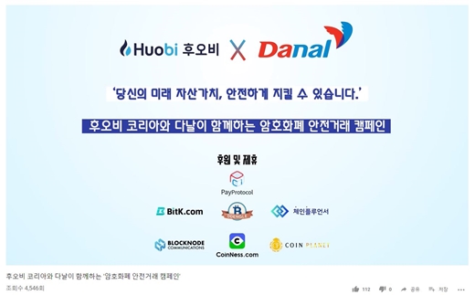 후오비 코리아가 암호화폐 안전거래 문화 확산을 위해 제작한 캠페인 영상 '암호화폐 안전거래 캠페인'은 유튜브 영상 '좋아요' 112건을 기록했다. 반면 '싫어요'는 0건을 기록해 긍정적인 반응을 끌어냈다.