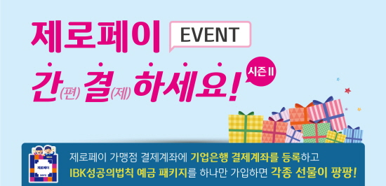 IBK기업은행은 제로페이 가맹점을 대상으로 7월31일까지 '간(편)결(제)하세요' 이벤트를 진행한다고 17일 밝혔다.
