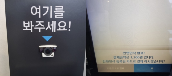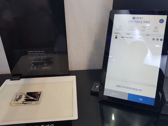 이날 직접 페이스페이 결제를 경험해본 결과, 간단하고 직관적인 과정으로 첫 결제에도 큰 어려움이 느껴지지 않았다. 먼저 안면인식 키오스크로 얼굴을 등록한다. 물건을 고른 후 셀프 체크아웃 계산대에 올린다. 이 계산대는 AI이미지 딥러닝을 활용해 상품을 인식할 수 있다. 결제 키오스크에 상품이 인식되면 얼굴로 결제하면 끝이다.