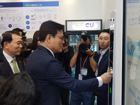최종구 금융위원장은 신한카드 부스를 방문해 페이스페이를 시연하면서 현장 직원에게 질문을 하기도 했다. 신한금융그룹의 혁신금융 릴레이가 주목받고 있다는 평가다.