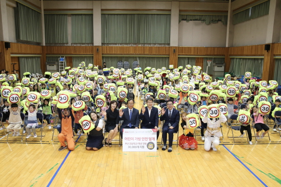 BNK부산은행이 어린이들의 안전한 등·하교와 교통사고 예방을 위해 '어린이 가방 안전 덮개' 3만개를 기증했다.