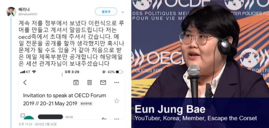 배리나는 27일 이른바 '정부설'에 대해 OECD의 선택이었다면서 그들이 보낸 서류 등을 내놓았다. 그럼에도 배리나에 대한 질타는 끊이지 않고 있다. 그가 한 말들 때문이다. 이 때문에 배리나가 어떤 경로를 통해 국제적 토론장에 나갔는지보다는 배리나의 언급들이 최소한 객관적 자료와 근거를 통한 정제된 발언이었어야 했다는 비판이 줄을 잇고 있다.