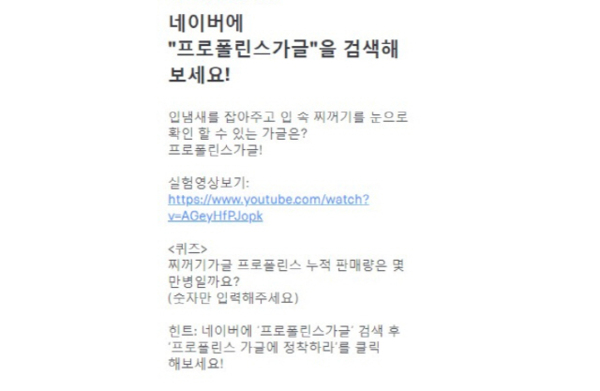 프로폴린스가글이 지금까지의 실적으로 홍보에 나섰다.