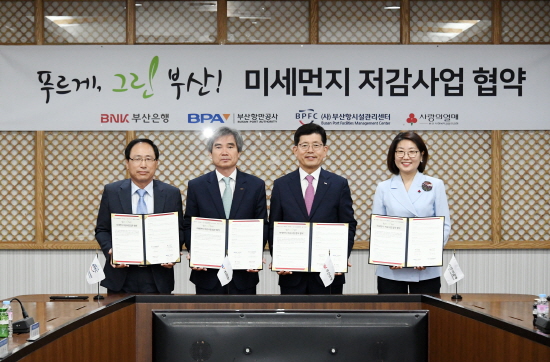 BNK부산은행은 세계 환경의 날인 5일 오전, 부산항 내 하역장비와 차량 운영 등으로 발생하는 미세먼지 문제의 해소를 위해 부산항만공사, 부산항시설관리센터, 부산사회복지공동모금회와 함께 '미세먼지 저감사업 공동협약'을 맺었다.