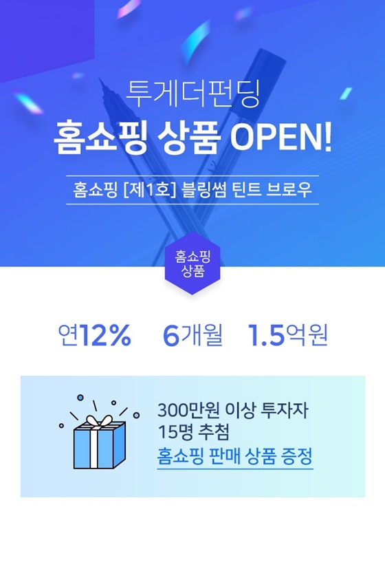 이번 상품은 투게더펀딩의 1호 홈쇼핑 투자상품이다. 홈쇼핑 투자상품은 홈쇼핑 방송을 통해 판매되는 브랜드에 투자하는 P2P상품으로, 투자자에게는 단기간의 고수익을 제공하고 판매업자에게는 사업에 필요한 재원을 조달해 안정적인 사업운영을 지원한다.