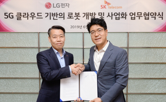 SK텔레콤은 LG전자 가산 R&D 캠퍼스에서 '5G 클라우드 기반의 로봇 개발 및 사업화'를 위한 업무협약을 체결했다고 25일 밝혔다.
