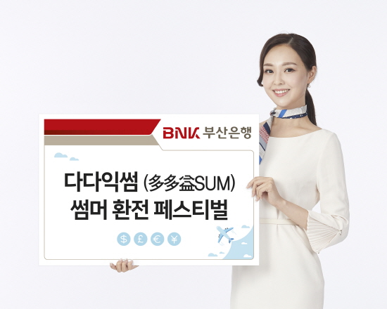 BNK금융그룹 부산은행이 여름휴가 시즌을 맞아 해외여행 고객을 대상으로 '다다익썸(多多益SUM) 썸머 환전 페스티벌'을 7월1일부터 8월31일까지 실시한다.