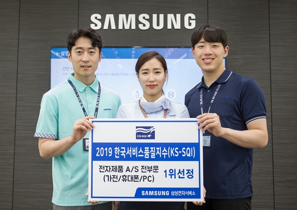삼성전자서비스는 4일 한국표준협회가 주관하는 '2019 한국서비스품질지수(KS-SQI)' AS 산업 평가에서 가전제품, 휴대전화, 컴퓨터 서비스 전 부문 1위를 석권했다고 밝혔다.