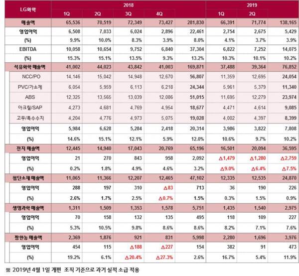 이어 "3분기에는 일회성 비용 부담이 대부분 해소되고 석유화학부문 고부가 제품 증설 물량 가동 효과, 전지부문의 매출 증대 및 생산 안정화로 전반적인 실적 개선이 예상된다"고 덧붙였다.