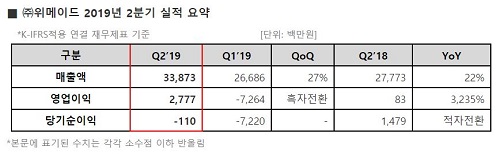 위메이드는 올해 2분기 연결기준 영업이익이 28억원을 기록, 흑자전환했다고 7일 밝혔다.