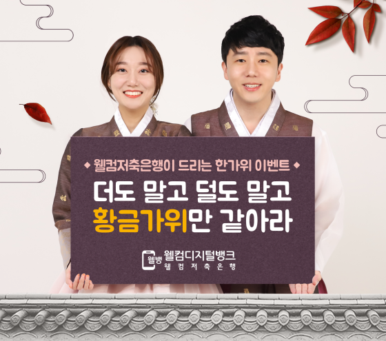 웰컴저축은행 관계자는 "민족 명절인 한가위를 맞이해 고객과 함께 풍요로움을 나누는 이벤트를 준비했다"며 "더 많은 고객이 웰컴디지털뱅크에서 제공하는 혜택 높은 서비스를 통해 소확행(소소하지만 확실한 행복)을 누릴 수 있기를 바란다"고 말했다.
